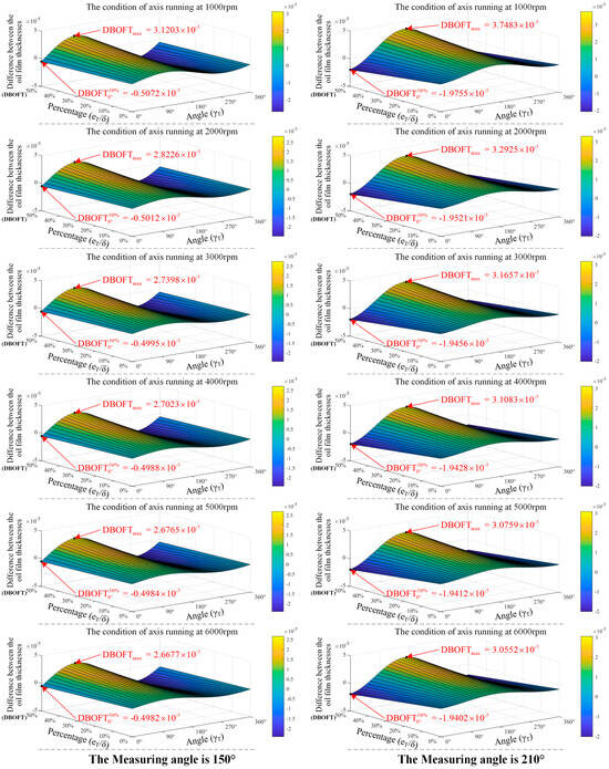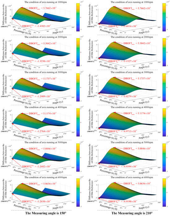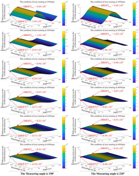 The oil film thickness () at the point () can be calculated based on the mathematical model of oil film thickness, as demonstrated in Equation (6).
