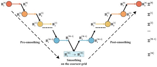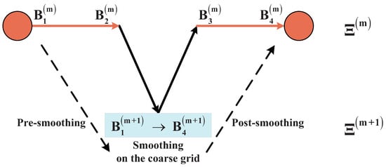 where is the iterative method Equation (14), and and are respectively the initial guess and objective functional of . The second is grid transfer operators, which consist of two operators: restriction and prolongation operators. The restriction operator