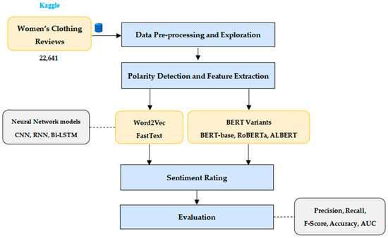 The data used in our study is sourced from the Women’s Clothing E-Commerce Reviews dataset available on Kaggle, data and codes sources: https://github.com/oumaima-bl/Sentiment-Analysis-Predicting-Product-Reviews-for-E-commerce-Recommendation-using-Deep-Learning.git (accessed on 23 June 2024).