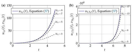 It is the last situation that is of particular interest in the present work, because even if series (32) is convergent, the value of the parameter can considerably influence the speed of convergence of . Situations may therefore arise where the number of terms to be considered may become numerically prohibitive, making the HPM-L method imprecise, inoperative, or very difficult to implement.
