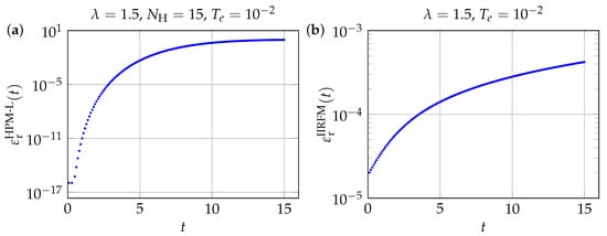 In what follows, some of the results obtained by the IIRFM will be compared, among others, with the results provided by the homotopic perturbation method with Laplace transformation (HPM-L), an approach that also relies on an initial application of the Laplace transformation to Equation (2). We therefore recall the main results that define this method in the linear case only ( and ).