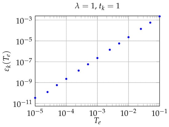 Figure 14 shows the time variations in temperature of a heat point source with radius mm, immersed in ethylene glycol at rest, at room temperature (, ). The electrical heating current considered had a constant intensity and the temperature coefficient of the point source was , for an electrical resistance . The Chebyshev interpolation was calculated with , over the interpolation interval . The maximal relative error committed on the approximation of was in this case for . The sampling period was s.