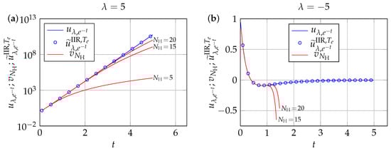 - and : this is a hybrid situation, in which the IIRFM numerical solution uses both the Laplace transfer function and the Adomian polynomials approach.We now explain the next steps of the IIRFM, but only in the case of the linear situation ( and ).