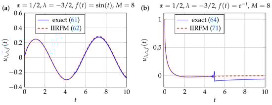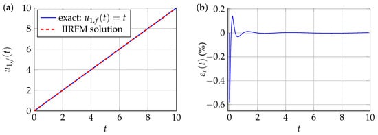 Equations (24) and (25) are the key results of the IIRFM applied to the numerical solution of linear CVIEs of the second kind. In contrast to the method of homotopic perturbations with Laplace transformation (HPM-L), which will be presented in the following paragraph, it is not necessary with the IIRFM to calculate the Laplace transform of the source function in order to numerically solve the problem under consideration. This is a considerable advantage of the IIRFM, as there are situations where the calculation of is not possible. This is the case, for example, if includes a random component (like noise) or is the result of experimental measurements.