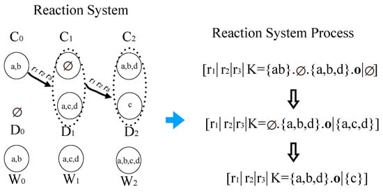 - Brodo, L.; Bruni, R.; Falaschi, M. A process algebraic approach to reaction systems. Theor. Comput. Sci. 2021, 881, 62–82. [Google Scholar] [CrossRef]