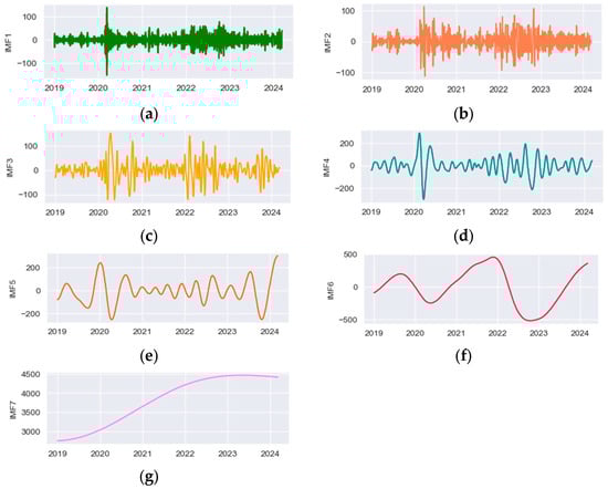 (a) IMF1. (b) IMF2. (c) IMF3. (d) IMF4. (e) IMF5. (f) IMF6. (g) IMF7.