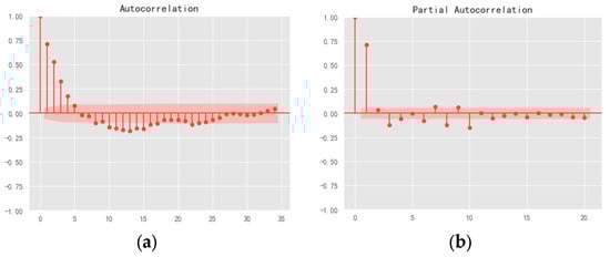 The ACF diagram and PACF diagram are as follows (Figure 7):