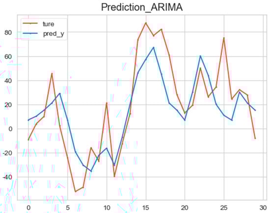 The ARIMA model (3, 0, 1) was used to predict the high-frequency Co-IMF1 data, and the prediction results are shown in the following figure (Figure 9).