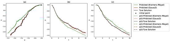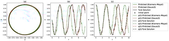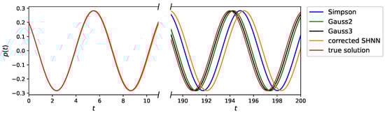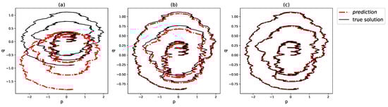 Figure 8 illustrate the comparison between the true and predicted phase trajectories generated by the neural network using the Simpson’s rule, two-point and three-point Gaussian quadrature, respectively, on