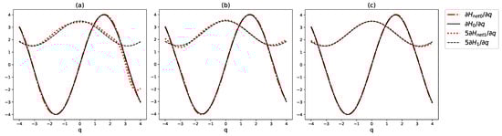 are obtained using the Simpson, the two-point and the three-point Gauss quadrature, respectively. Here, the error function between the learned Hamiltonian
