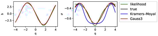 obtained by the above likelihood method and the Kramers–Moyal method with the results from our method in Example 3.