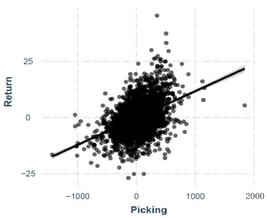 Another critical ability required for mutual fund managers to outperform passive investment benchmarks is stock picking [41]. Stocks selected by high-performing mutual fund managers can serve as valuable investment signals for other investors [42]. Corporate governance practices of target firms may play a significant role in managers’ ability to pick the right stocks. Moreover, firms that are frequently selected by funds tend to develop into acquirer firms [43]. The level of outperformance exhibited by a fund can indicate the persistence of its superior stock picking ability [44]. In the Chinese IPO market, the unobservable variable of mutual fund managers’ expectations shows a correlation with significant returns. The picking ability of managers can be influenced by fund and market characteristics [45], with mutual funds being more inclined to allocate investments to pure-play firms rather than conglomerates [46]. Interestingly, fund managers who start their careers during a recession may exhibit more conservative behavior by picking defensive stocks over cyclical stocks [47].
