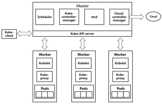 Kubernetes is a master–slave distributed architecture, mainly composed of master nodes, worker (node) nodes, and client command line tools. The specific architecture diagram is shown in Figure 1.