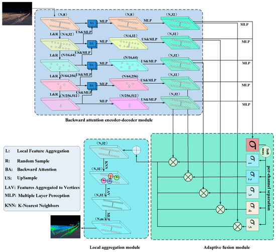 Secondly, local feature aggregation (LFA) [28] is utilized to expand the feature dimensions of each point to a five-order layer, as illustrated in Figure 2.
