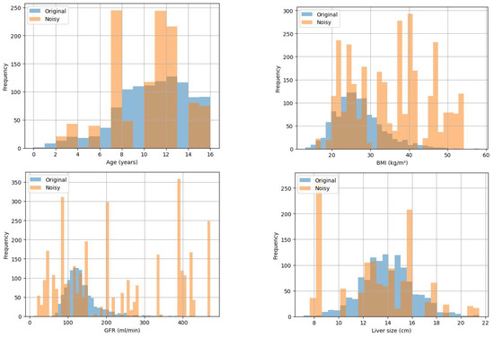 Similar to the analysis in the previous section, Figure 3 and Figure 4 indicate that when = 0.1, the added noise to some extent disturbs the data, and the distribution of data with differential privacy remains basically consistent with the original data distribution, effectively protecting individual privacy.