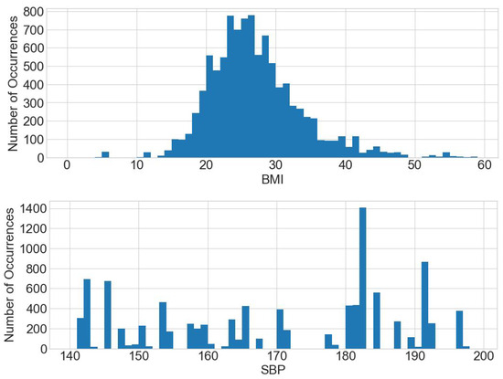 The original dataset is then replaced with the generated synthetic dataset and queries are responded to based on it. The histograms of BMI and SBP for the synthetic dataset reveal graphs that are the same shape as the original dataset, as shown in Figure 7.