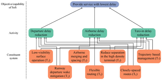 - DeLaurentis, D.A.; Crossley, W.A.; Mane, M. Taxonomy to guide systems-of-systems decision-making in air transportation problems. J. Aircr. 2011, 48, 760–770. [Google Scholar] [CrossRef]