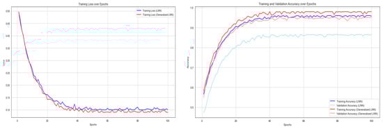 The LNN achieved an AUC of 0.97, an accuracy of 0.96, and an F1 score of 0.88. Meanwhile, the GLNN showed identical AUC performance at 0.97 but surpassed the LNN with an accuracy of 0.98 and an F1 score of 0.98. These results indicate that while both models are highly effective in distinguishing between classes, GLNN offers improved accuracy and precision, making it a superior choice in scenarios requiring optimal classification performance. The comparative analysis of the training accuracy and loss curve for the LNN and Generalized LNN, presented in Figure 9, distinctly demonstrates the superiority of the proposed method. Throughout the 100 epochs, Generalized LNN achieves a steeper and more rapid improvement in training accuracy and maintains higher accuracy levels, indicating efficient learning and better stability. The loss graphs further underscore Generalized LNN’s advantages, showing a sharper and more consistent decrease in loss, with the final values approximately 10% lower than LNN. This consistent outperformance in terms of higher accuracy and lower loss highlights its potential for better generalization, making it a more effective model. The results suggest that the proposed framework is a more robust and efficient choice, effectively adapting and learning quicker within the same training regime. The Generalized LNN is particularly suitable for retinal disease classification due to its dynamic temporal processing capabilities, biologically inspired architecture, and recurrent neuron dynamics. GLNNs excel at handling the sequential nature of OCT images, capturing patterns across different slices, which is crucial for accurate disease detection. The general form of the dynamic neurons allows them to maintain and update hidden states over time, effectively integrating information across multiple slices. Additionally, advanced sequence modelling techniques like Y-NCP and Z-NCP enable the network to analyse spatial and depth information within the images. GLNNs’ adaptability and efficient resource utilization, resulting from their sparse and compact structure, make them highly effective and computationally efficient for medical imaging tasks. These characteristics collectively enhance GLNNs’ ability to capture complex patterns and slight variations in OCT images, leading to precise and reliable retinal disease classification. Table 1 provides a performance comparison between the proposed model and existing state-of-the-art approaches, with the best results emphasized in bold.
