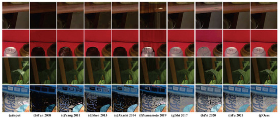 - Guo, X.; Cao, X.; Ma, Y. Robust separation of reflection from multiple images. In Proceedings of the IEEE Conference on Computer Vision and Pattern Recognition, Columbus, OH, USA, 23–28 June 2014; pp. 2187–2194. [Google Scholar]