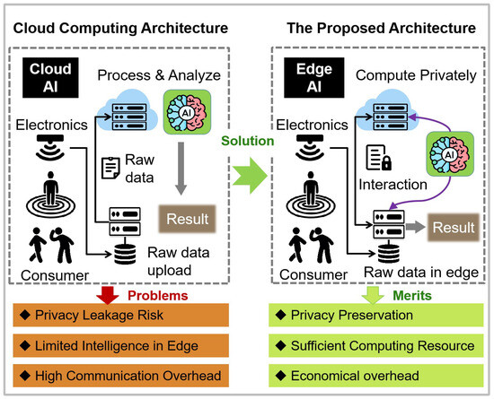 Benefiting from recent developments in intelligent electronics and integrated terminals, cloud computing and edge computing have significantly advanced the field of HBR. However, conventional cloud computing architecture suffers from serious problems. As shown in Figure 1, limited by insufficient computing power at the edge, raw data need to be uploaded to the cloud for processing and analysis. This cloud AI mode is plagued by several severe issues, such as privacy leakage risks, constrained intelligence at the edge for HBR, and high communication overhead [10,17]. This brings challenges to the development of HBR applications. A primary challenge for current deep learning-based HBR is preserving the behavior information of the targets.