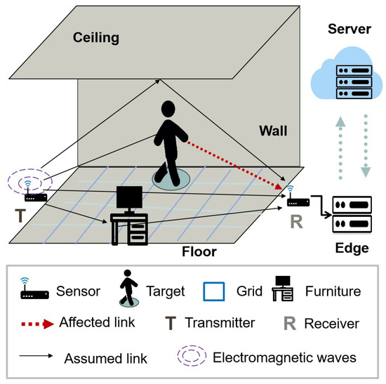 Edge computing has increasingly become prominent in recent years within the field of target behavior recognition, including location and activity recognition [34,35,36]. Kwon et al. [36] deployed a tensor processing unit (TPU)-enabled edge computing camera system in the ceiling of a room and designed a multi-person detection algorithm to run on the edge TPU for real-time pose estimation of the targets. This system ensures the privacy of individuals and reduces data transmission/storage. Wu et al. [37] proposed a personalized federated learning framework for human activity recognition within a cloud–edge architecture in the Internet of Things (IoT) environment, leveraging edge computing for rapid processing and minimal latency. Narayana et al. [38] used a thermopile in conjunction with a PIR sensor for location estimation. Since a low-resolution thermopile array only provides the gait of the target instead of the actual image, they believe that the combination of the PIR sensor and thermopile is privacy-preserving. Cominelli et al. [39] designed a randomization approach of CSI. It prevents unauthorized localization by adding randomly generated measurements to the CSI signal, such as random peaks and random phase jumps. Shi et al. [40] designed self-powered triboelectric mats and, based on them, a smart floor monitoring system was proposed for location and activity sensing. This system was designed by running a deep learning-based model on instant sensory data.