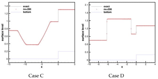 - Case CThis example is from [9] and the initial data areover a step bottom