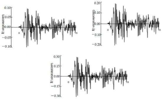 - When the input seismic wave intensity increased from 0.1 g to 0.3 g, the maximum acceleration increase at the top of the 3-m model was 102.63%, while the acceleration increase of the 8-m model was 79.16%. This suggests that shallower buried structures are more sensitive to seismic wave strength.