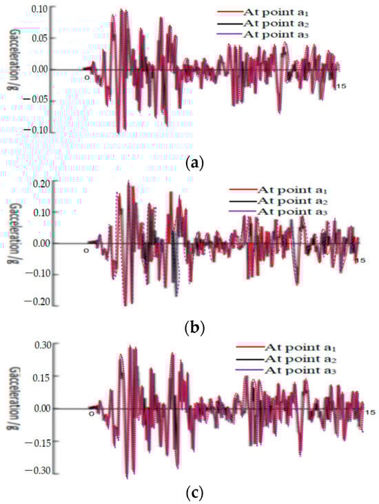 - The site effect amplifies the peak value of acceleration and response spectrum, and changes the spectral characteristics of seismic waves. The amplification effect had a great influence on the seismic response of structures during a period of less than 2 s, but had no significant effect on the seismic response of structures during a period greater than 2 s. Moreover, the peak acceleration at the arch foot position of a1, a2, and a3 was larger than the original seismic data, and the amplification effect at the arch foot position of a3 was larger than that at the arch foot position of a1 and a2. The amplification effect was minimal at a2 near the input point.