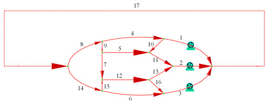 Diagram of ventilation network with multiple fans (the number indicates the branch number).