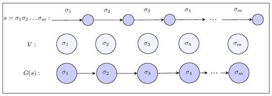Let denote the set of all finite strings s over , including the empty string . The transition function can be extended to [28] by defining and , for , and , where and are both defined. Given a state and a string , write if is defined for the string s at the state q.