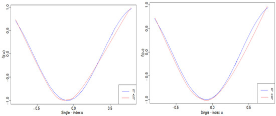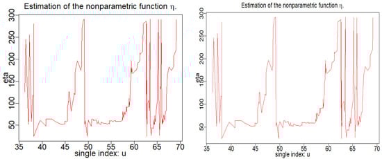 Using the method by De Boor [], if is sufficiently smooth, then it is well approximated by some function in the -dimensional space, which is generated by the B-spline basis. From the construction (see Step 2), each satisfies and . So, the identifiability of the CVGPLFSIM model is guaranteed. Like in Ait-Saïdi et al. [], we consider the cubic B-spline functions and .