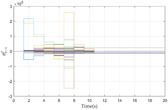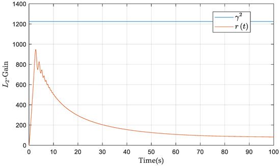 Figure 13 shows the response of , indicating that its value remains consistently below the maximum value , thereby satisfying the H∞ performance requirement.