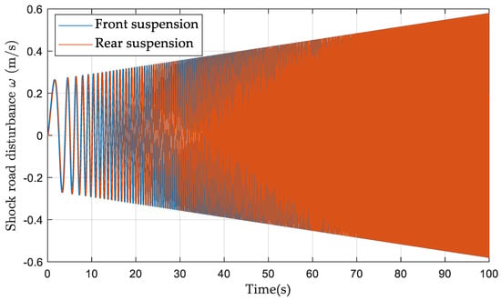 where is the height of the road irregularity, represents the width of the road irregularity, and denotes the vehicle speed. The excitation frequency of the impact model is related to the vehicle speed, allowing the evaluation of different excitation frequencies by adjusting the vehicle speed.