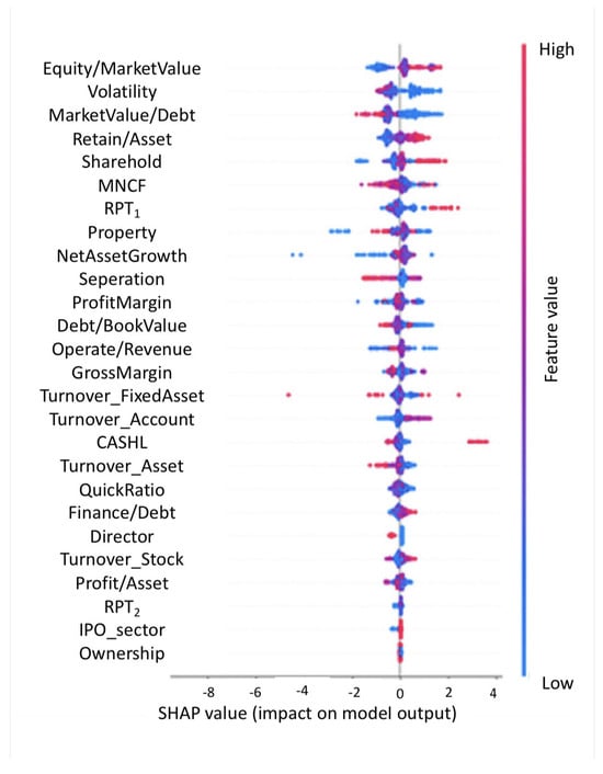 Despite the fact that above-mentioned complex machine learning models have capabilities of nonlinear mapping and generalization in new environments, as well as high accuracy, they are trained in a “black box”. In other words, the economic meanings of network parameters, thresholds and training results are difficult to illustrate. Therefore, researchers investigate how to improve the explainability [] of machine learning models to increase both transparency and accuracy. To solve this issue, they use structured interpretative and analytical frameworks of machine learning models, such as Shapley Additive Explanations (SHAP) [], local interpretable model-agnostic explanations (LIME) [] and iBreakDown to analyze the significance and contributions of variables from both local and global perspectives []. In contrast with LIME, SHAP has an edge in providing a more consistent, comprehensive and intuitive way of understanding the influence of variables on model prediction. This is because LIME approximates the “black box” model locally to ensure both interpretability and local fidelity. Meanwhile, the explanations can vary with different samples, which are generated from random perturbations.