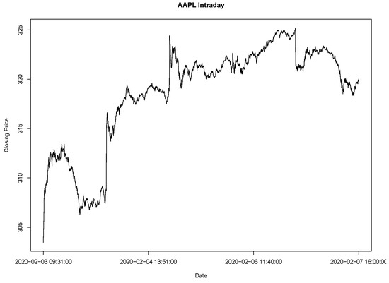 AAPL intraday closing price from 3 February 2020 09:31 to 7 February 2020 16:00.