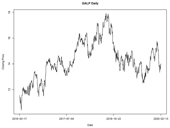GALP daily closing price from 17 March 2016 to 13 February 2020.