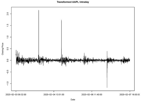 Transformed AAPL intraday closing price from 3 February 2020 09:32 to 7 February 2020 16:00.