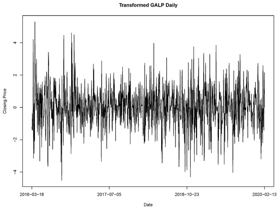 Transformed GALP daily closing price from 18 March 2016 to 13 February 2020.