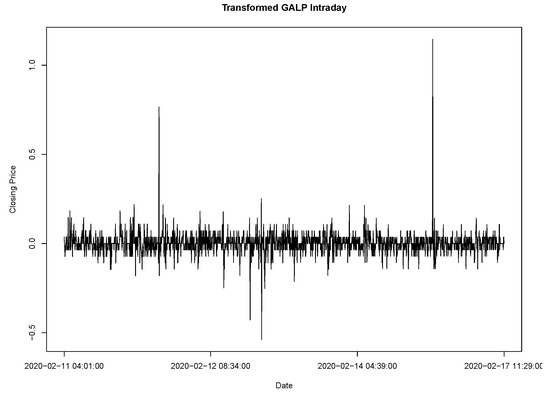 Firstly, from all the obtained results, we can note that the lowest standard deviation of the transformed datasets was , while the highest was . Also, we need to note that, in the intraday datasets, of the transformed datasets had a standard deviation lower than .
