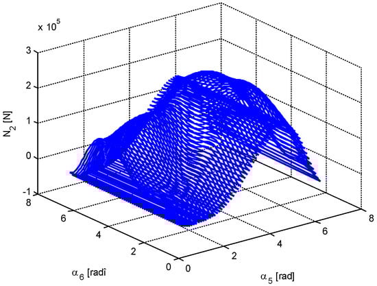 - The minimum value of the force in bar 5 is very close to 0; that is, there are two positions in which the bar 5 is useless. The same conclusion, but for one position, is valid for bar 6.