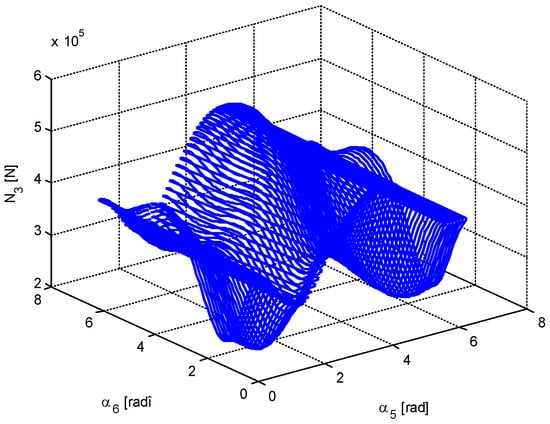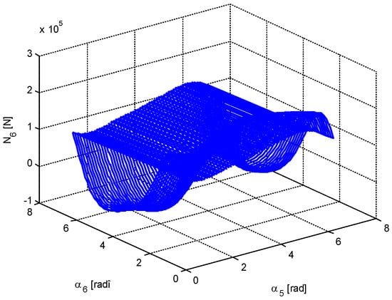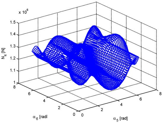 We consider that the original system has four bars denoted by 1, 2, 3, and 4. The main parameters are , , (the angles between the first bar and the , , and axes, respectively), (the modulus of elasticity (Young)), (the diameter of the bar), (the length of the bar), (the bar is shorter than the nominal dimension). For the rest of the three bars we have , , , , , , (the bar has the nominal length), , , , , , , (the bar is longer than the nominal length), , , , , , , (the bar has nominal length). Two bars (denoted by 5 and 6) are added to this system. For these bars one knows , , , (the bar is shorter than the nominal length), and , , , (the bar has the nominal length).