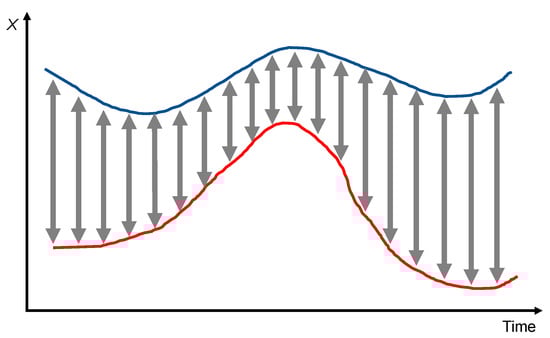 In contrast, if a particular data-generating function is known and used to generate data, various forms of a time series can be obtained from a single DGP, as depicted in Figure 7. In a statistical approach, current data can be considered a sample that accurately reflects characteristics of a specific population. Therefore, a direct comparison of distances might be inappropriate for verifying a time series generated under the same DGP. The L2 norm values can vary significantly depending on how the sampling was conducted.