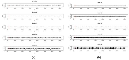 where t = 1, …, 3600 and θ0 = 100. The remaining parameters, φ1, φ2, θ1, θ2, and the standard deviation σ of εt ~ N(0, σ2), are subject to the following variations: