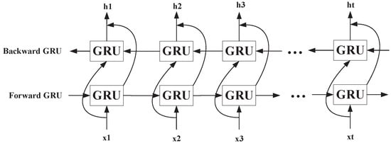 The bidirectional gated recurrent unit, abbreviated as BiGRU, as shown in Figure 2, can be regarded as an extended version of a GRU, consisting of two GRU networks operating in opposite directions. One network processes the time-series data from the beginning to the end, while the other processes it from the end to the beginning. Both of them produce an output, and a BiGRU combines these two outputs to obtain the final result. This bidirectional structure for processing information can simultaneously capture information from both past and future and adaptively learn long-term dependencies and interactions among multiple variables in time-series data. This leads to a more comprehensive modeling of temporal relationships in time-series data.