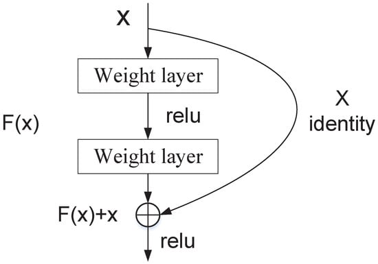 To address this problem, He et al. [23] proposed the concept of residual networks, which helps to solve the problem of gradient vanishing and gradient explosion, while training deeper networks with good performance. The design of the residual network shown in Figure 3 mainly includes shortcut connections and identity mapping. The shortcut connection makes the residual possible, while the identity mapping makes the network deeper. There are two main identity mappings: skip connection and activation function.