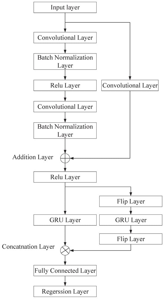 In order to find the relationship between the missing data and those from the neighboring moments in the time series, a combined RCNN-BiGRU neural network prediction model is constructed. This model primarily consists of a residual CNN (RCNN) network and a bidirectional GRU (BiGRU) network. The RCNN is mainly used to extract local feature information from the time series, while the BiGRU further learns high-level abstract representations of these features. This section first provides a detailed explanation of the principles of the main components in the model and then describes the roles and connections of each network layer in the RCNN-BiGRU combined neural network prediction model.
