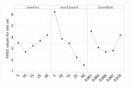 It can be clearly seen from Table 2 that has the most significant influence on the performance of the AADE-RCNN-BIGRU and has the least. Another statistical analysis is conducted, and the trend of each factor level is illustrated in Figure 12.