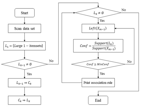 The execution flow of the Apriori algorithm is depicted in Figure 4 below:
