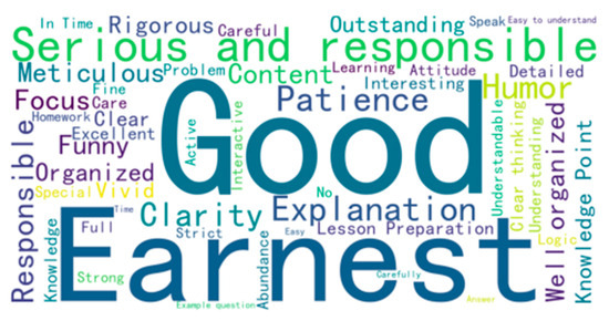 Subsequently, a word cloud is generated based on these extracted words and their respective frequencies. The word cloud visually presents an overview of the evaluation by depicting words in varying sizes and colors based on their frequency and importance, as illustrated in Figure 6.