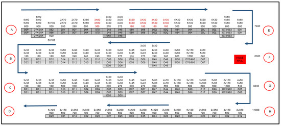 This study focused on finding the shortest route for the order picker to pick an order in Zone 1. Zone 1 is considered a critical area since the number of pickers involved is only seven pickers and they have to collect numerous items and orders within a limited time. In addition, the pickers need to pick all the items manually and complete the order within normal working hours. The layout plan for Zone 1 is shown in Figure 2. There are four shelves with four front subaisles (A, B, C, D) and four end subaisles (E, F, G, H). Each aisle is an open-ended route. Each shelf is loaded with items ready to be picked. In this case, an order picker is free to go to any side of the shelves and may return to the same point. However, the objective is to find the shortest route to help minimise the order-picking distance for the order picker.